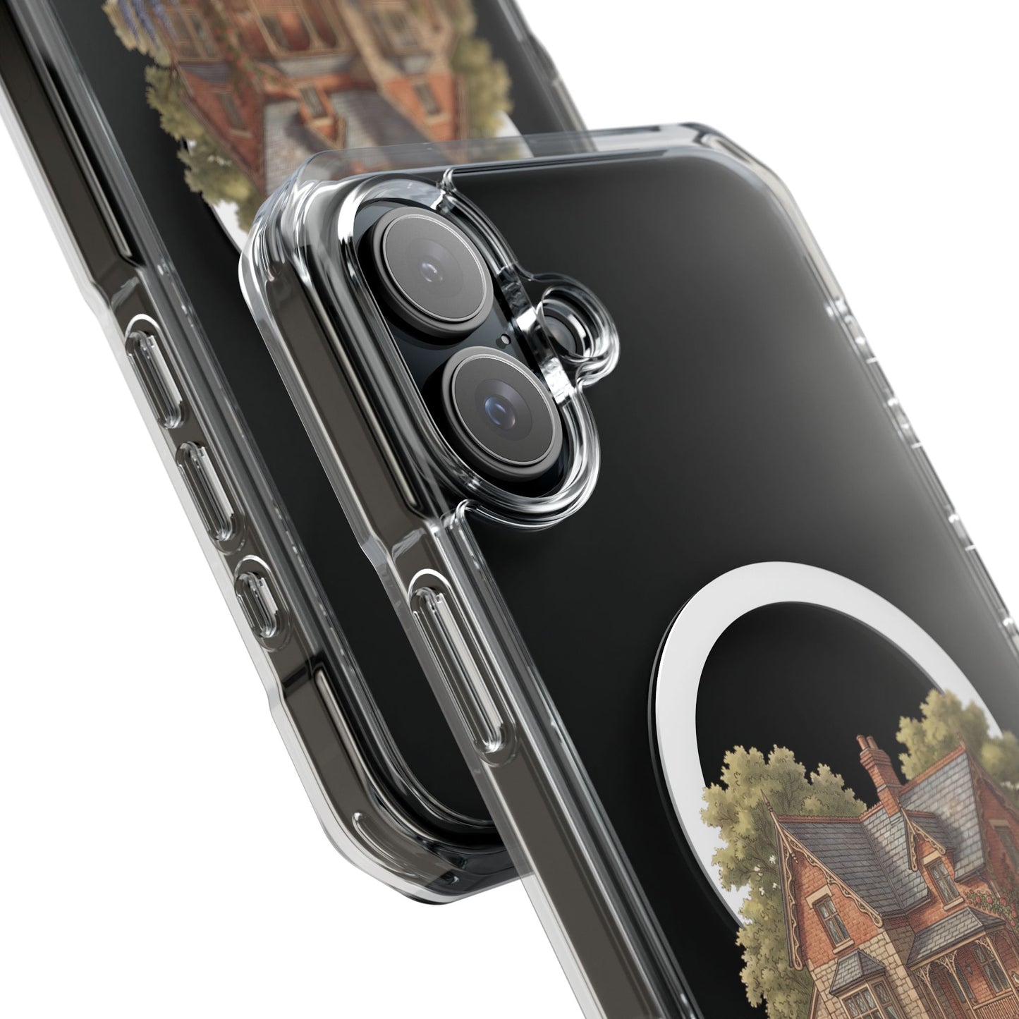 This elegant and subtle case features an embedded MagSafe®-compatible module for seamless accessory compatibility, air-cushioned bumper corners for superior drop protection, and holes for straps or charms, ensuring both style and functionality.